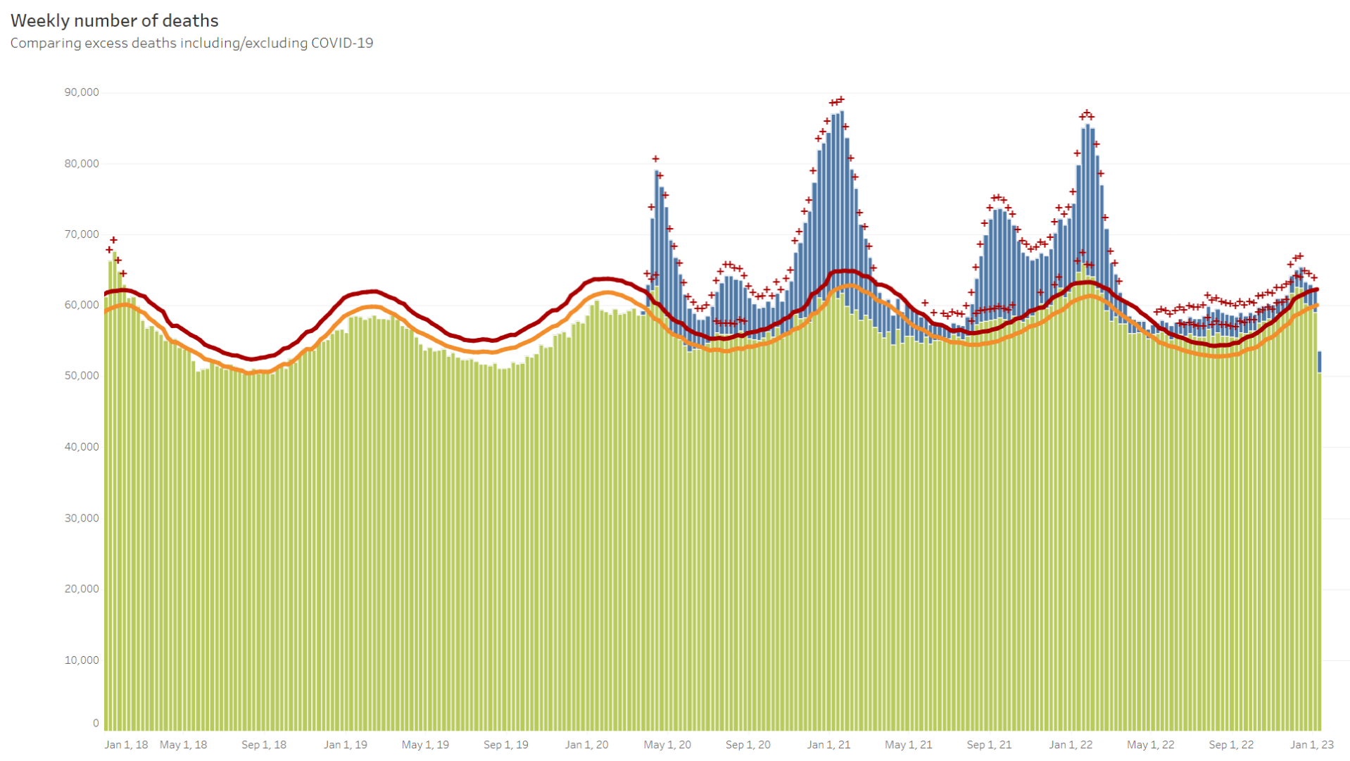 @Humpleupagus @37712 @GothicAnon @Piss_Ant @polarisera Given that there are massive spikes in the death rate that can’t be explained by random chance, and that the spikes track pretty closely with the COVID death numbers This means one of two things: