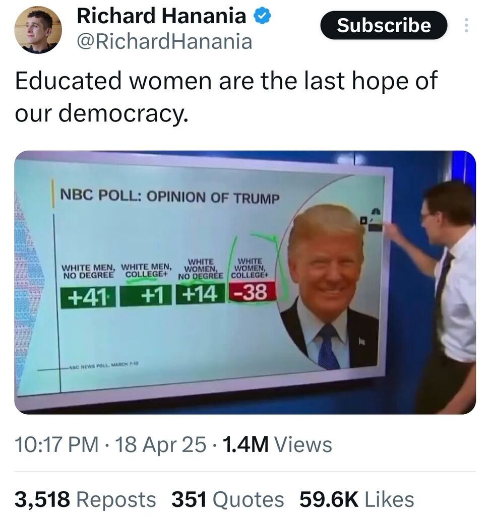 @leftforfed65 giving women rights was the greatest mistake of Western civilization. Giving women rights has led to women in the workforce and no mothers, gays in our schools and jews in our government. Repeal the 19th.
