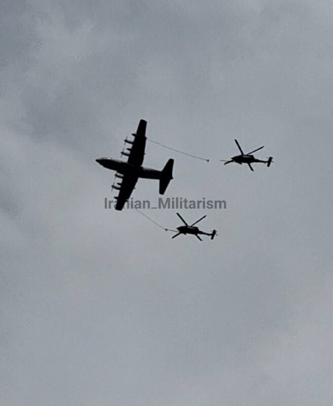. Dvě helikoptéry a tankovací letoun nad jižním Íránem. Kde je PVO??? .