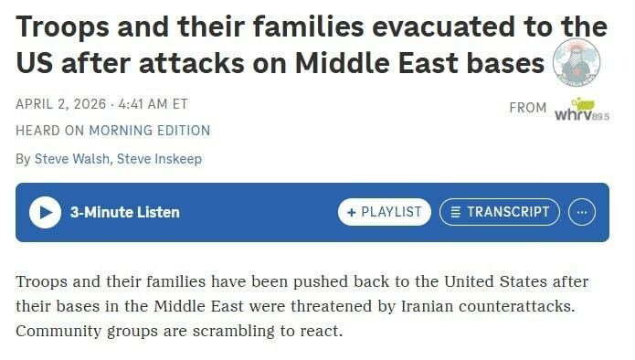 Opäť utekajú. rýchlo evakuujú 1500 vojakov z základne v Bahrajne po útokoch Iránu, — NPR Hlásia o odchode amerických vojakov zo základne Naval Support Activity Bahrain, kde je umiestnená 5. flotila námorníctva USA.
