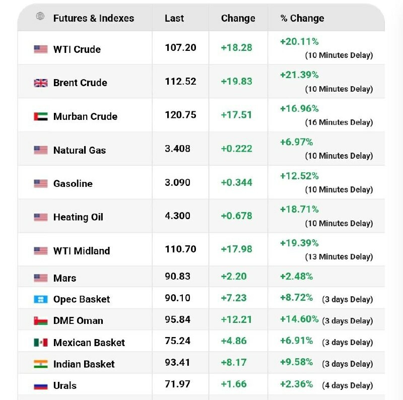 🛢️🇺🇸🇮🇷 Öljyn hinta kokenut tänään historiallisen nousun Jotkut vertailuindeksit nousivat jopa +20 % yhdessä päivässä Lähi-idän eskaloitumisen vuoksi 🔗 Liity mukaan | @MyLordBebo