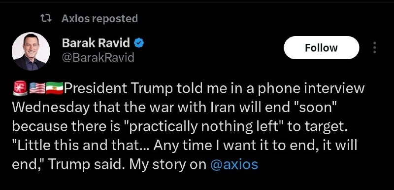 Lyhyesti Iranin tapahtumista: Kaikki Yhdysvaltain sotilastukikohdat Lähi-idässä on tuhottu, sanoi IRGC:n apulaiskomentaja, kenraali Ali Fadavi. #Trump: Iranissa ei ole "käytännössä mitään jäljellä pommitettavaa". Sota saattaa loppua pian. Kaikki ...