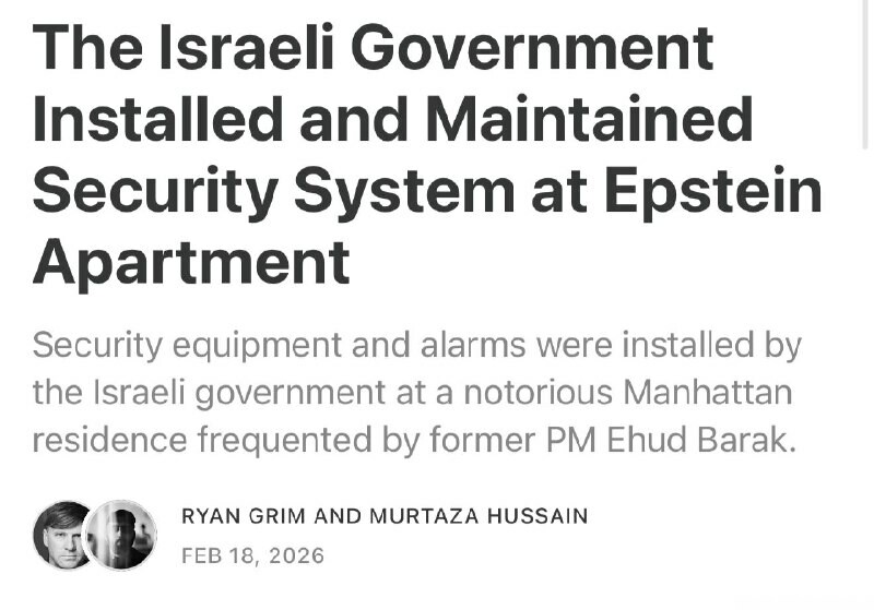 — / NEW: The Israeli government installed and maintained a security system at Jeffrey Epstein's New York City apartment, which was frequented by former Israeli Prime Minister Ehud Barak – Drop Site News