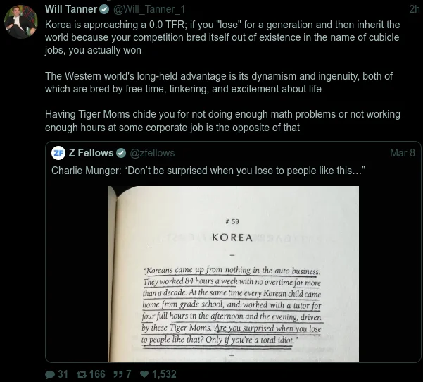 @deprecated_ii There is no comment about their fertility rate heading toward zero and how maybe that is more of a problem than the work culture. It is just accepted.