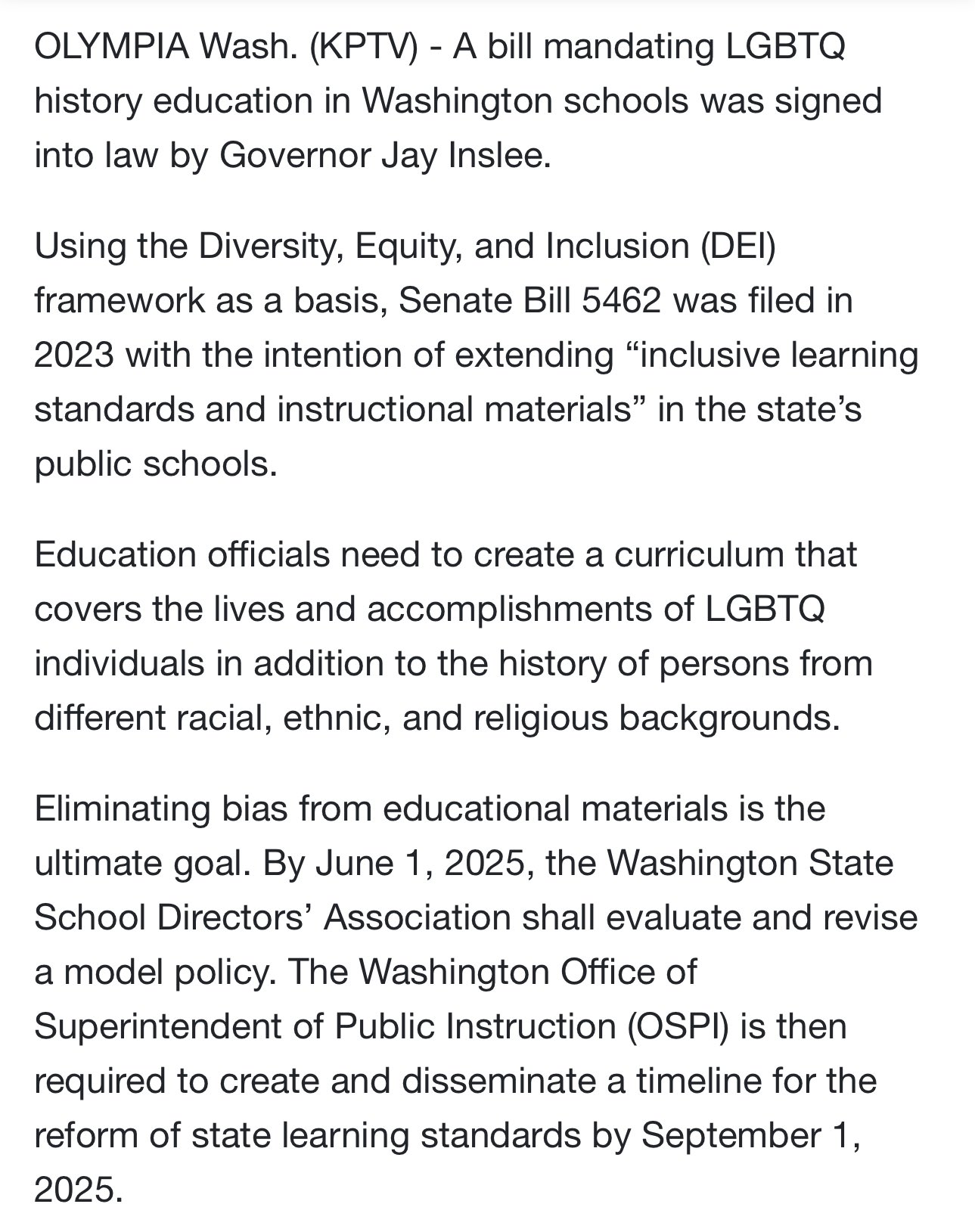 BREAKING: Washington State Gov signed a bill mandating LGBTQ history be taught in public schools.