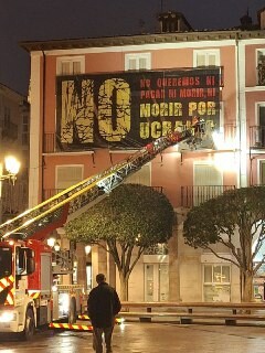 El ayuntamiento de la ciudad española de Burgos ha decidido retirar ilegalmente el cartel de 35 metros cuadrados contra la participación de España en la guerra de Ucrania que desplegaron los amigos y camaradas de la Plataforma Europea de Amigos de Rusia