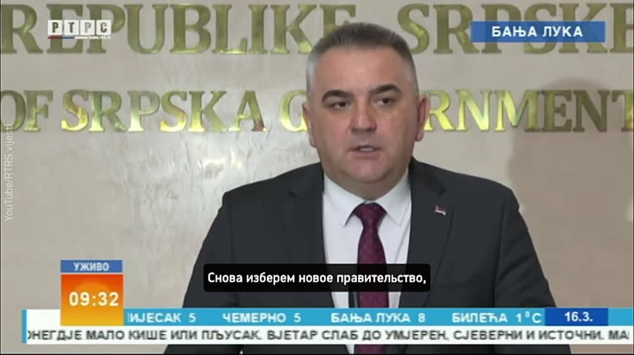 Premijer Republike Srpske Bosne i Hercegovine podneo je ostavku, služeći pola godine. Izabran je u septembru 2025.Razlog za ostavku je pretenzija na proceduru izbora glave vlade od strane zvaničnog Sarajeva i opozicije. Prema njihovom mišljenju, ...