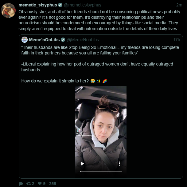 I'm for banning women from the internet.