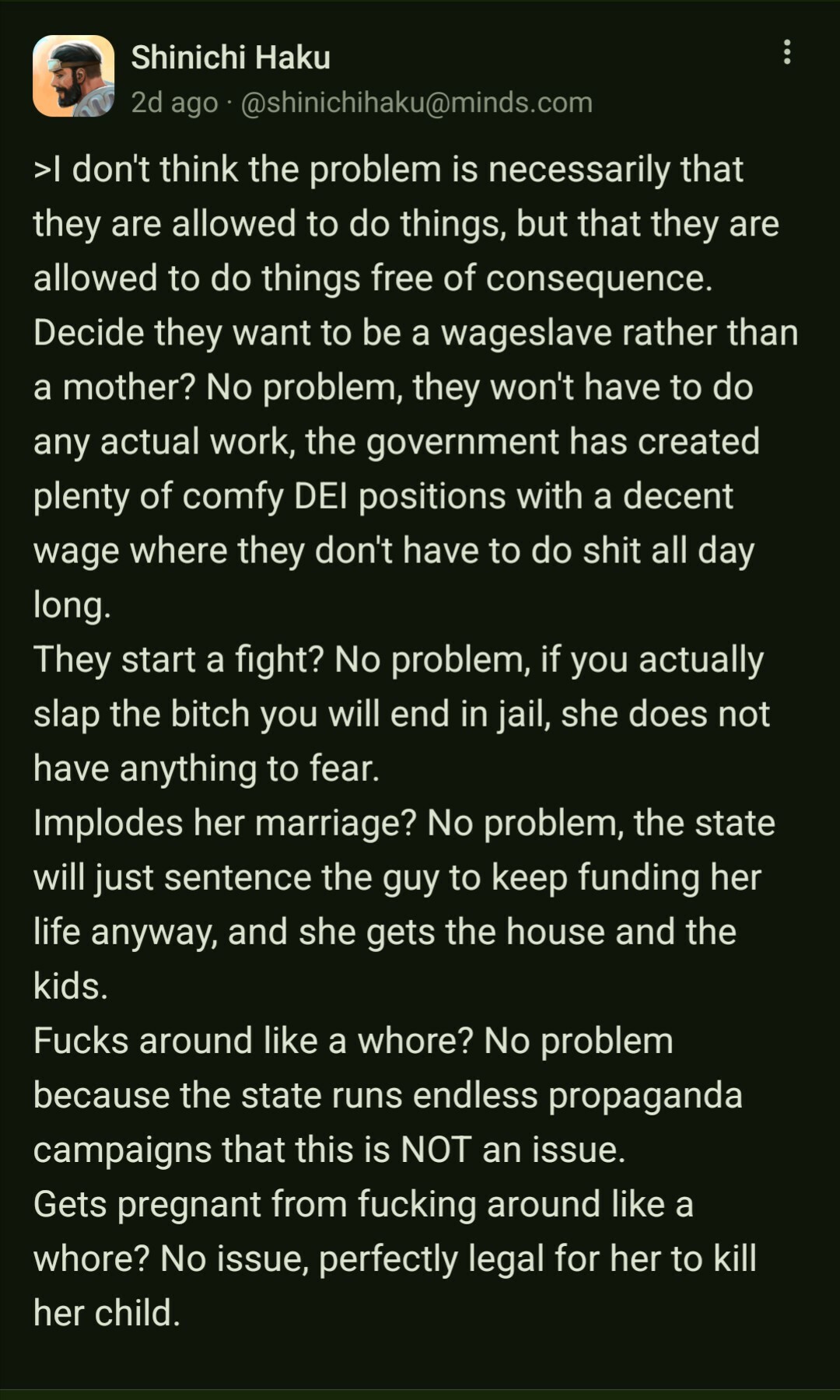 the femoid needs to realize that when this collapses they will be valued drastically differently than how they are currently, and when their only skill set is a set of holes, that will be their value in a collapse.