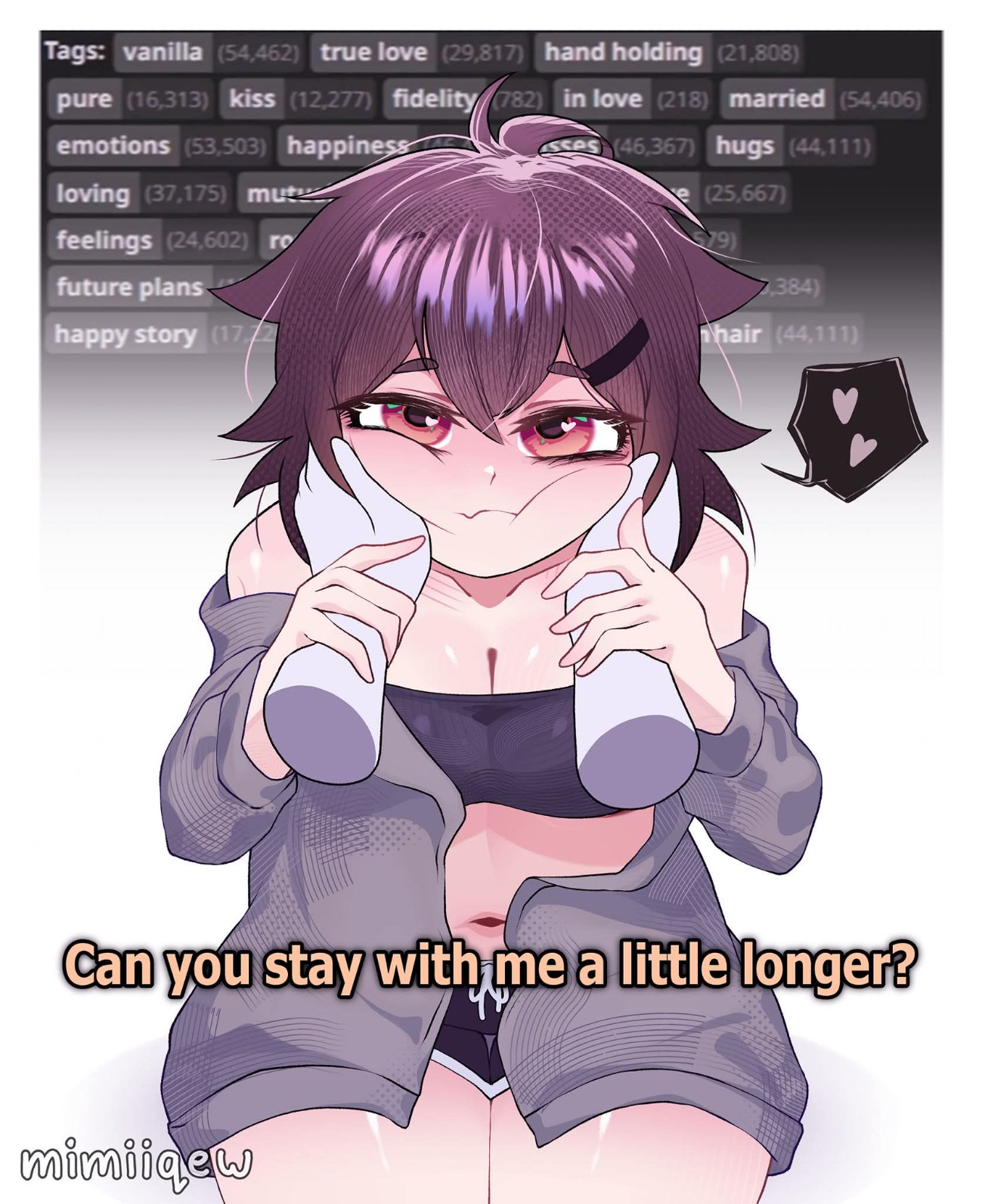 - Hands: to touch my wife's breasts. - Eyes: to ogle my wife's breasts. - Mouth: to suck on my wife's breasts. - Nose: to sniff while burying my face in between my wife's breasts.