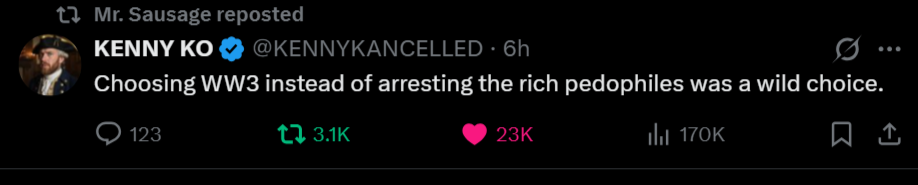 Actually, no further words are needed, because everything has already been said. Those who possess the ability to see beyond the surface and recognize the recurring patterns need no further explanation. And everyone else will continue to obediently jump over every stick dangled in front of them, like a trained dog that does exactly what is expected of it on command. The agenda of the world-fuckers at the top of the pyramid has been set for a long time anyway, and "we" can't change a thing about it. The only alternative is to become as independent as possible from this system of slavery and not be influenced by the daily updates of this political puppet show. The highest priority is to be your own master, to lead a self-determined life, and not to be guided by the interests of others. That's all you need to know. The great shitshow on the world stage continues even without our involvement. There are plenty of willing participants.