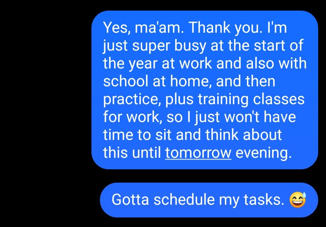 Someone asked if I was okay because I said I'd have something for them but not until this weekend.