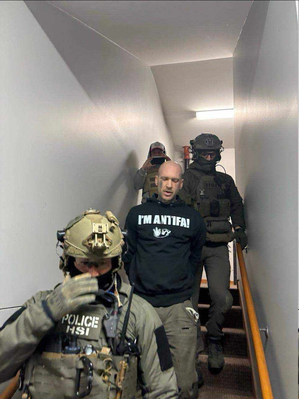 You couldn't come up with a better photo op for the MAGAtards then this freak getting carted off by the feds while wearing a hoodie that says "I'M ANTIFA."