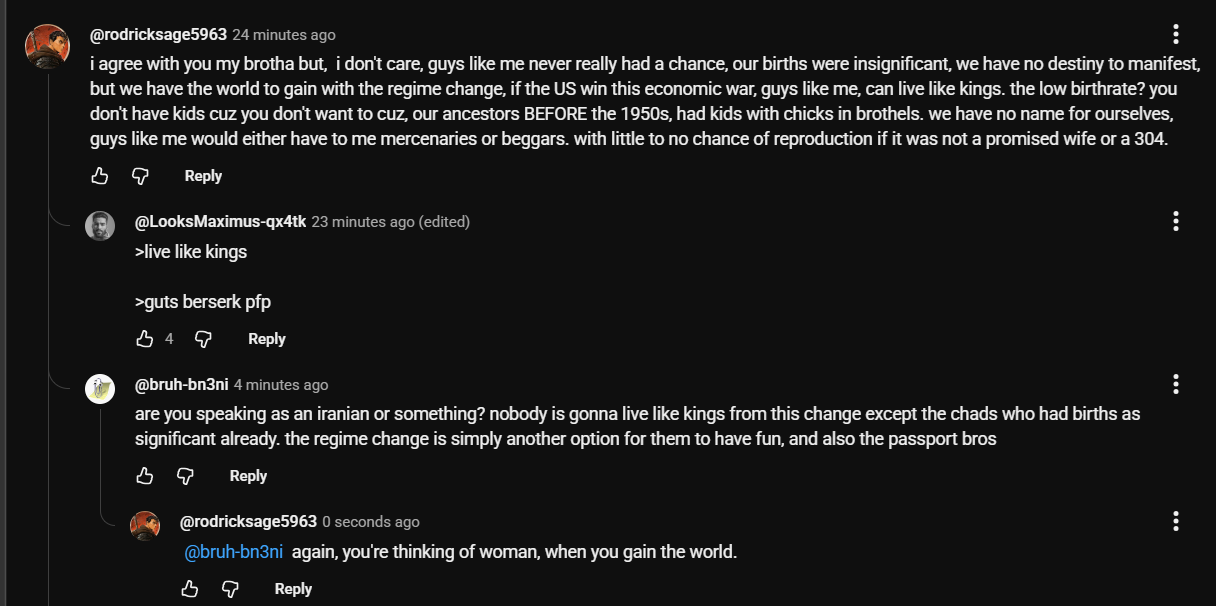 I agree with Rehab Room, and you know what? i want a regime change in Iran, i WANT Iran to become feminist, why? you have no idea what man like me, can gain.