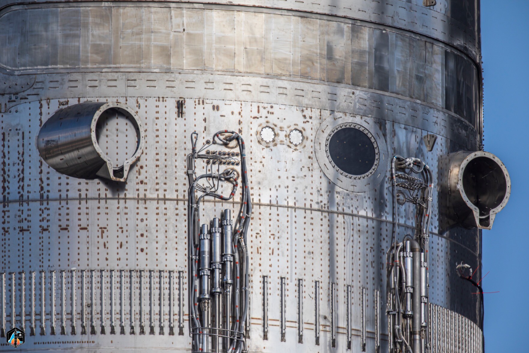 Closeup of Ship 39’s “drogue” propellant docking ports. Presumably, that would mean the tanker would have “probe” propellant docking ports.