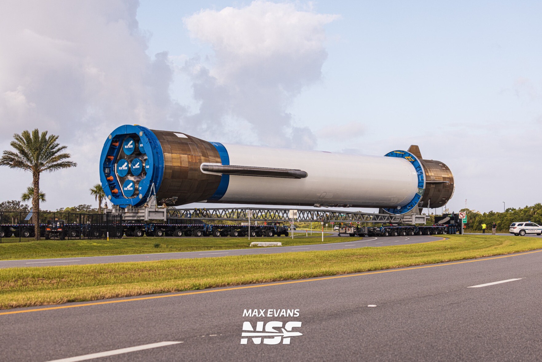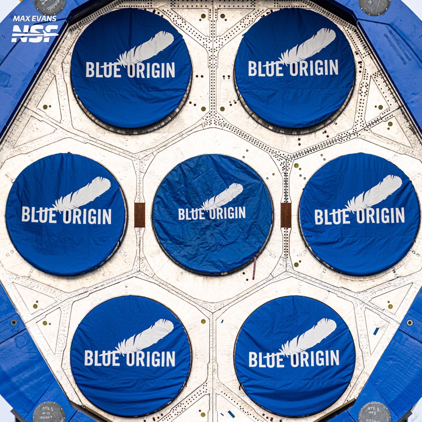 Another New Glenn booster, getting ready for its maiden launch and landing attempt. This will be the 2nd orbital class launch and landing attempt for Jeff Bezos’s Blue Origin. New Glenn is 7m in diameter, with a reusable methalox booster, and an expendable hydrolox upper stage. The booster has 7 BE-4 engines, and the upper stage has 2 BE-3U engines.