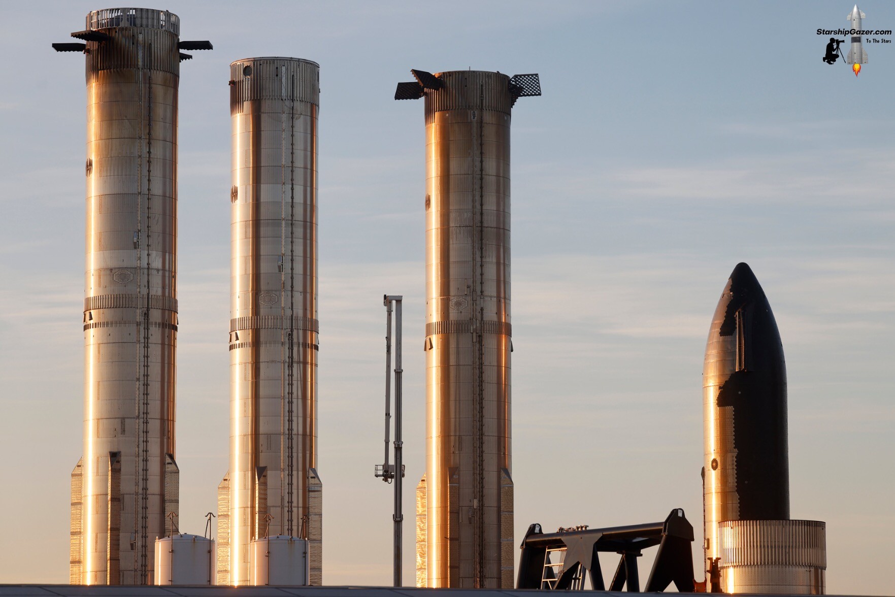 Booster 12 leaves Megabay 1, and joins Booster 17 & 15 at the Rocket Garden. Starbase, Texas.