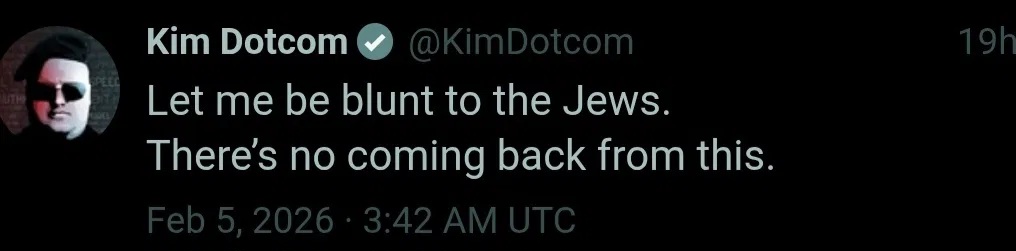 Kim Dotcom: “ Let me be blunt to the jews. There’s no coming back from this.”