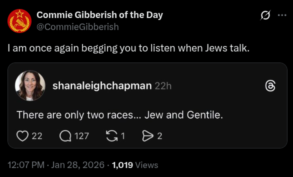To the jews, we aren't even human 😏 which gives them their "moral license" to exploit and exterminate us at their discretion. The fact that we're still putting up with it makes us complicit in our own subjugation as we can obviously have our dignity and sovereignty sold off in exchange for nigger ball and goy slop