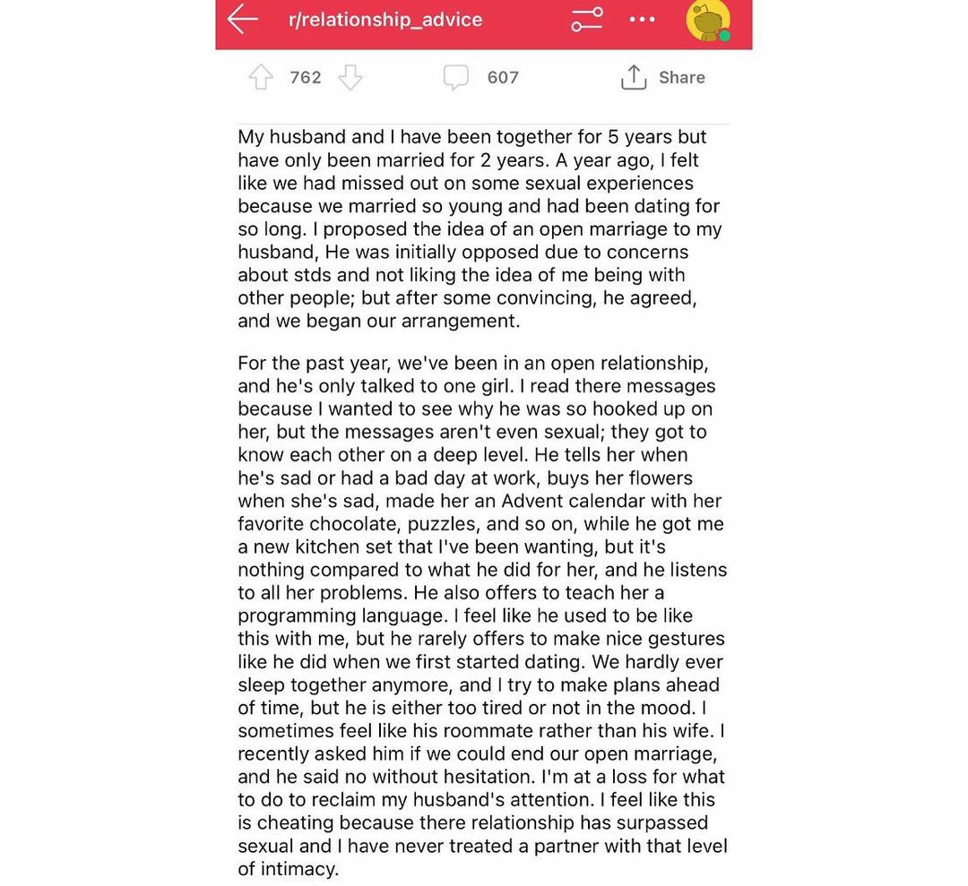 Yet another woman on reddit trying an open "relationship"