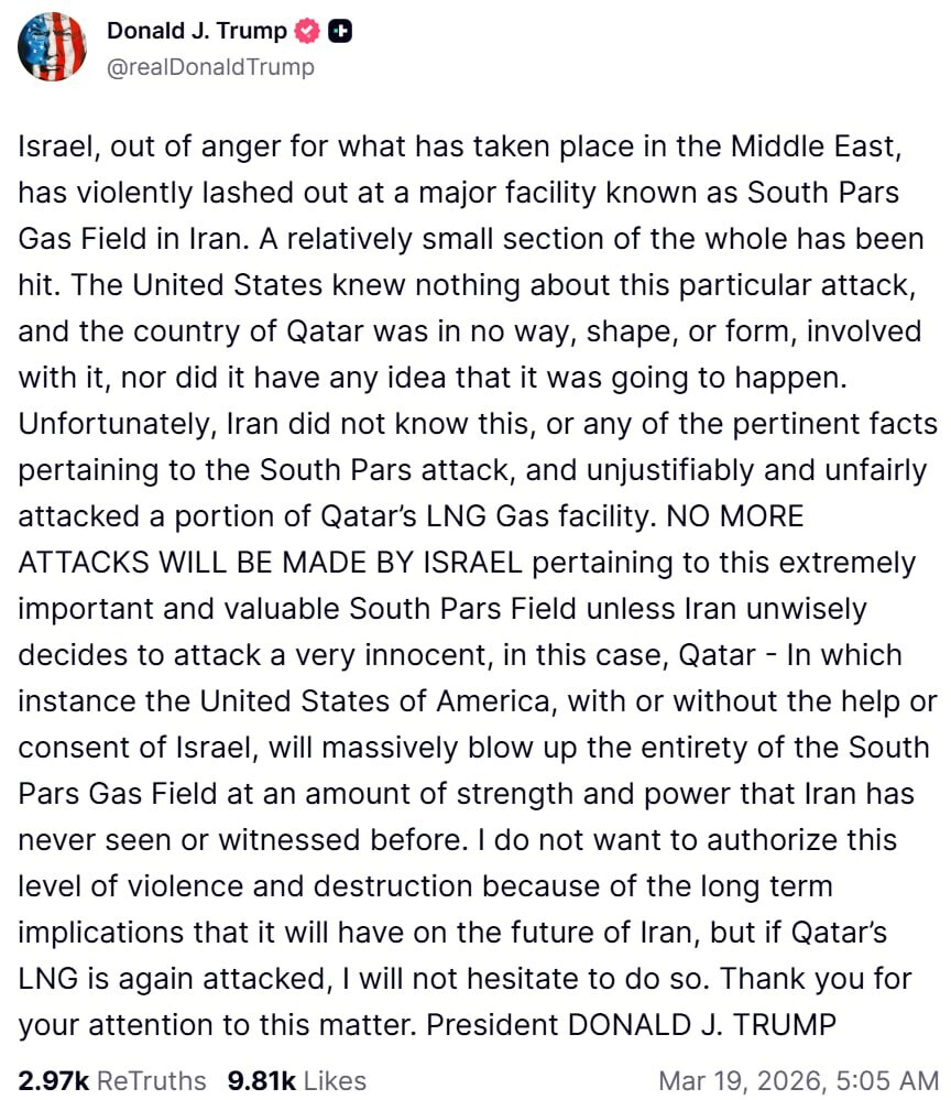 Ogorčenje Izraela na Bliskom istoku dovelo je do masovnog udara na veliko postrojenje poznato kao gasno polje Južni Pars u Iranu. Pogođen je relativno mali deo celog komplexa. Sjedinjene Američke Države nisu znale ništa o ovom konkretnom napadu