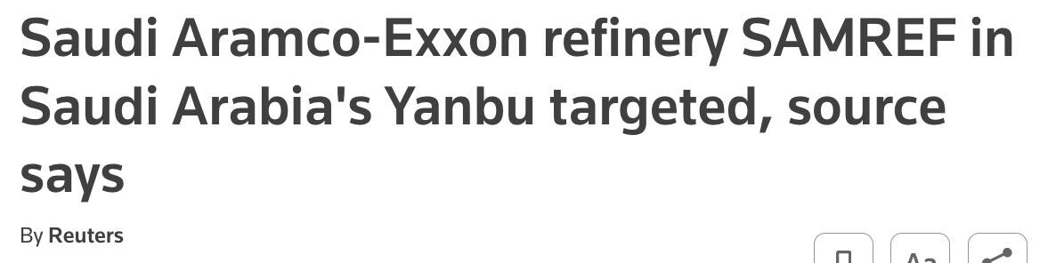 Ujutru je napao ključni objekat za snabdevanje nafte iz Persijskog zaliva.Prema Rojtersu, udar je izvršen na rafineriji SAMREF u Saudijskoj luci Mantanbu.S obzirom na to da je hormuški tesnac zatvoren