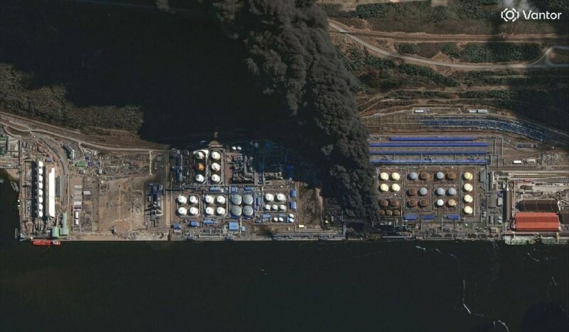 🫖🍙🍤🥛 🐦‍⬛️🇷🇺🇺🇦Сателитски снимци пожара у луци Уст-Луга у Лењинградској области након напада украјинских дронова. 🚀