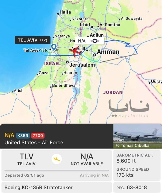 Израелски Канал 12: Амерички авион за допуну горива био је приморан да слети на аеродром Бен Гурион након "квара". Супротно ономе што пишу израелски медији летелица је била на мисији изнад ирачког ваздушног простора пре него што је издала позив за
