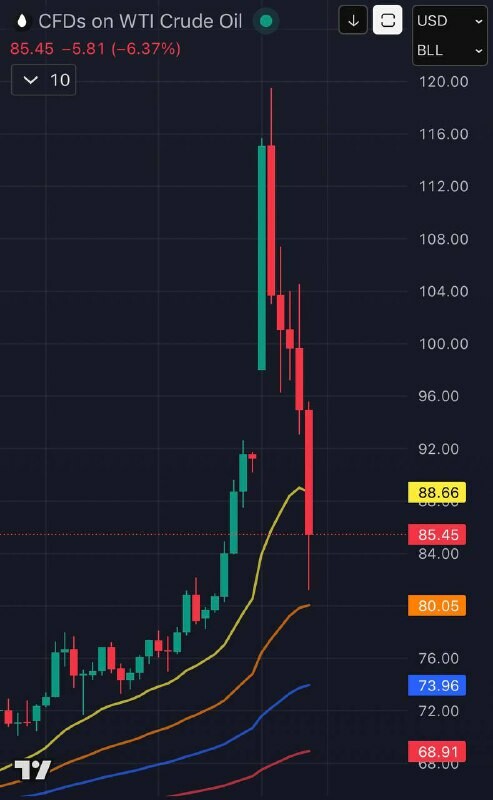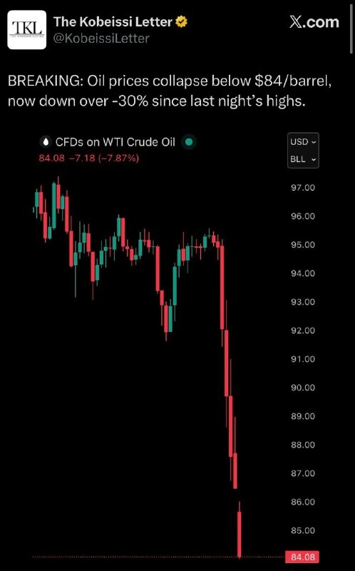 Öljyn hinta romahti myös siksi, että #EU ilmoitti vapauttavansa strategiset öljyvarastonsa… hinnan laskemiseksi. 🔗 Liity mukaan | @MyLordBebo