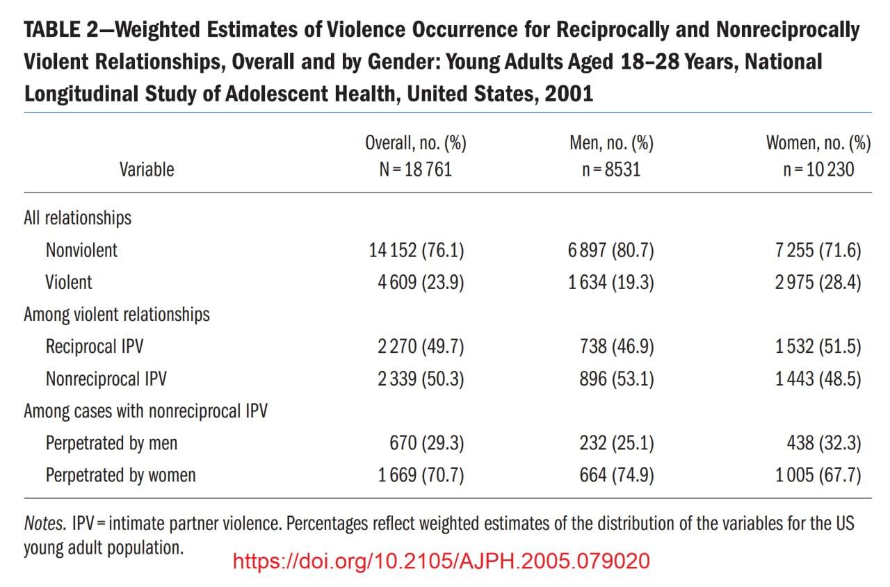 Of the ~50% that is nonreciprocal, women are perpetrators in ~70% (!) of cases.