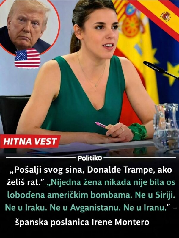 Шпанска посланица Европског парламента Ирена Монтеро одржала је оштар говор у којем је критиковала војне акције и спољнополитичке одлуке везане за сукоб у који је укључен Иран.