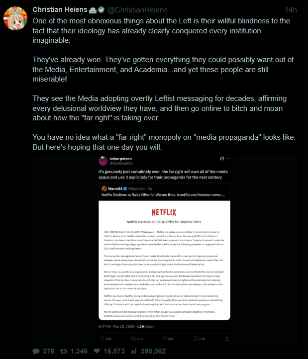 the problem with seeing your message so thoroughly everywhere but also positioning yourself as edgy underdogs that are subverting the system is that if any change does break through, it dispels that character quickly.