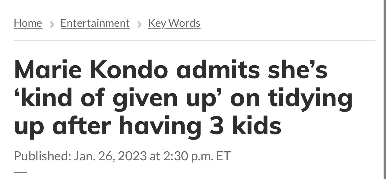 @SuperLutheran It turns out that it was not having a tidy home that sparked joy for Marie, but having children of her own to take care of. Just as nature intended.