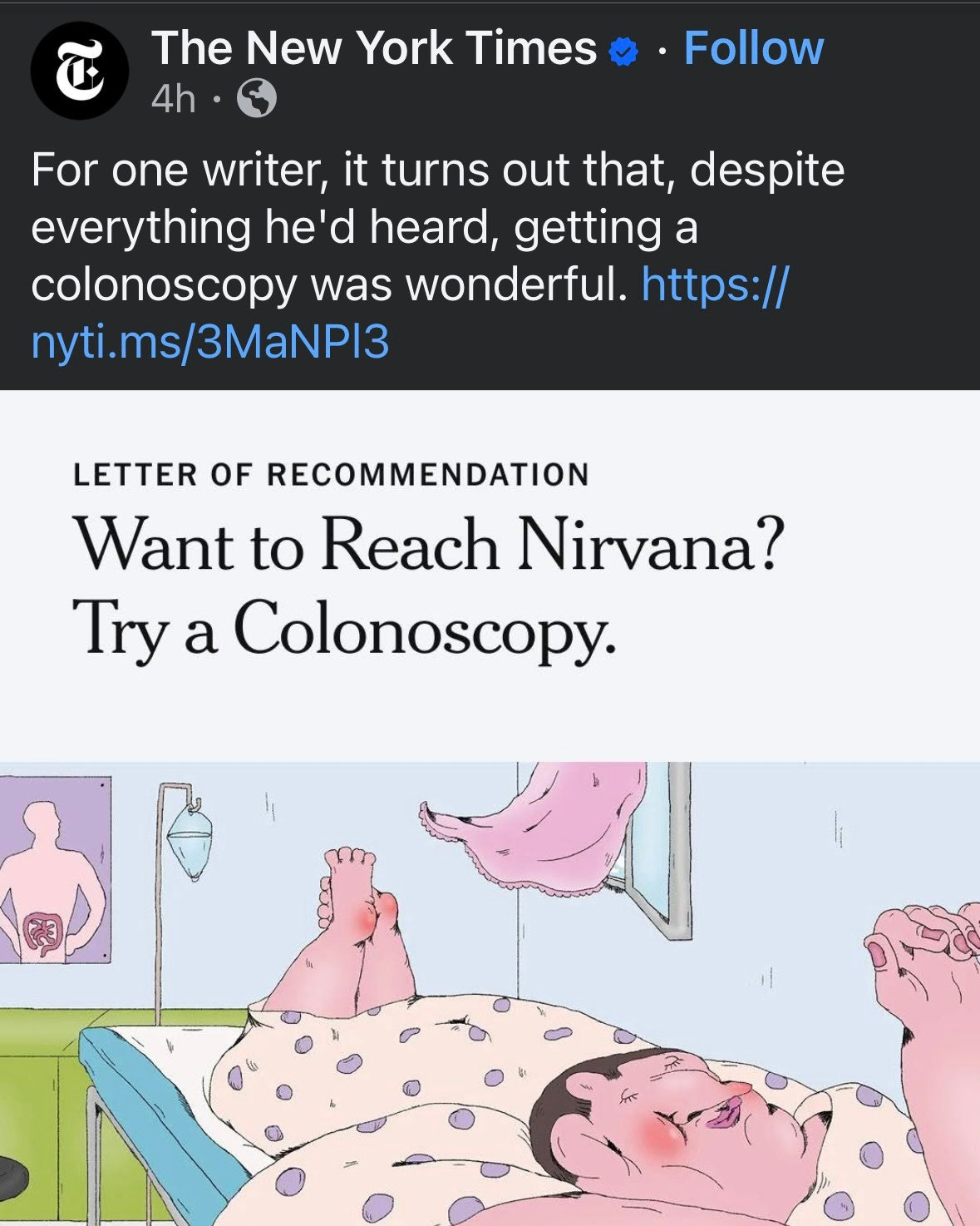 @Aether Yeah, no part of the colonoscopy is fun. Especially not the preparation the night before. You will never forget the feeling of the burning sensation of stomach acid coming out where the sun don't shine.