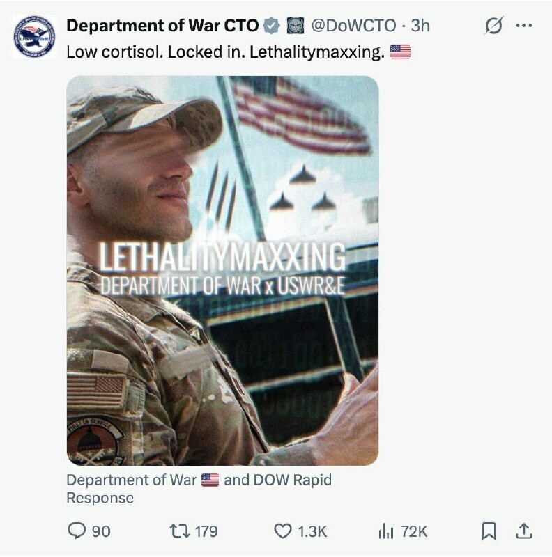 Sotaministeriö jakaa julkaisun aiheesta ”LETHALITYMAXXING” … ”Alhainen kortisoli?”