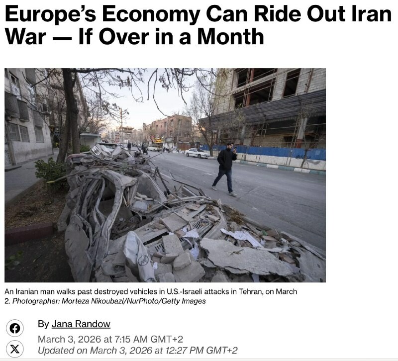 . Prodloužená válka na Blízkém východě ohrožuje #EU ekonomickou krizí, — Bloomberg Podle odborníků zůstává Evropská unie nejzranitelnější ekonomikou v důsledku konfliktu s Íránem kvůli závislosti na ropě a plynu z Blízkého východu. V roce 2026 se...