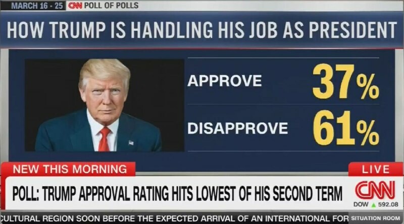 . Činnost Donalda Trumpa na postu prezidenta #USA schvaluje 37% a neschvaluje ji 61% US občanů. Nízké hodnocení dostal v oblastech inflace (71% neschvaluje), nezaměstnanosti (61%) a migrantů (60%).