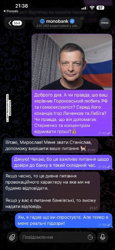 ...авжди була за Україну. Ну це абсурд. Донька, думаю, повинна відреагувати, тому що від того чоловіка ні вибачення [не було], нічого, і він продовжує далі своє доводити. Тобто, я думаю, що буде якесь продовження».