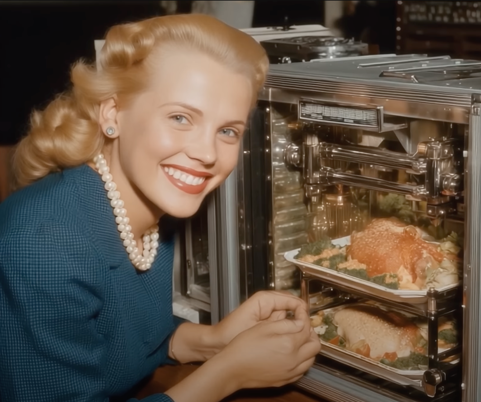 Some 50s era futuristic AI music. The beautiful women are doing laundry or making sammiches. No weird fingers. Its quite wonderful.
