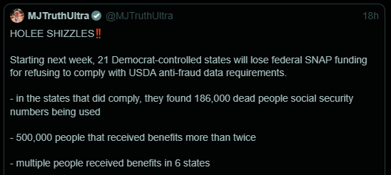 It seems like this might actually be a fairly large squeeze point. Obviously judges are going to try and block shutting this off, but based on how much howling there was over no SNAP before, the states have little to no spare money to cover a gap.