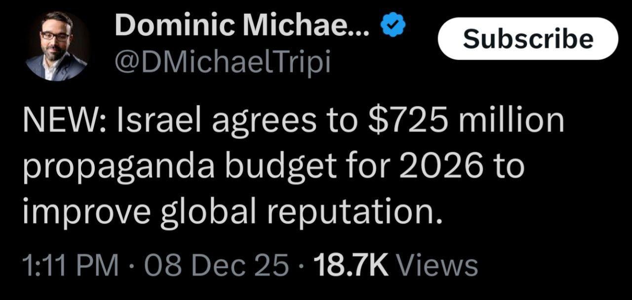 Israel is planning to bribe and gaslight their way to making people forget that they're committing a genocide in Gaza and using our corrupt politicians to control us. So the usual for them.