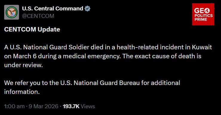 CENTCOM confirms another US soldier has died due to a.."Medical Emergency."