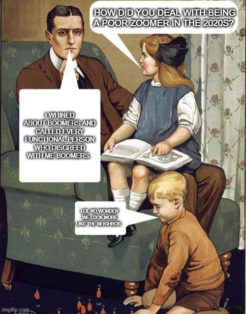But okay, it's the boomers' fault they bought a house before the dotcom shit in the 90s. That's why your life is shit. mmhmm, here's a tissue, nigger.