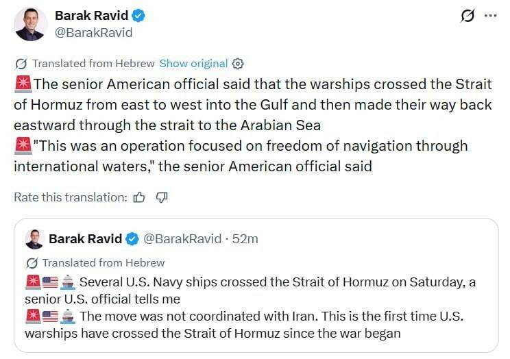 #Iran pakotti Hormuzinsalmen läpi kulkeneet amerikkalaiset alukset kääntymään takaisin - Hormuzinsalmen läpi kulkeneet amerikkalaiset alukset ovat palanneet Arabianmerelle, kirjoittaa toimittaja Axios Barak Ravid.