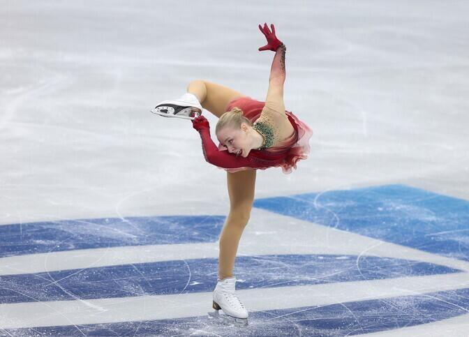 For some reason my first thought is not wow she is flexible but did she get mangled into a unsafe body position in a freak ice skating accident