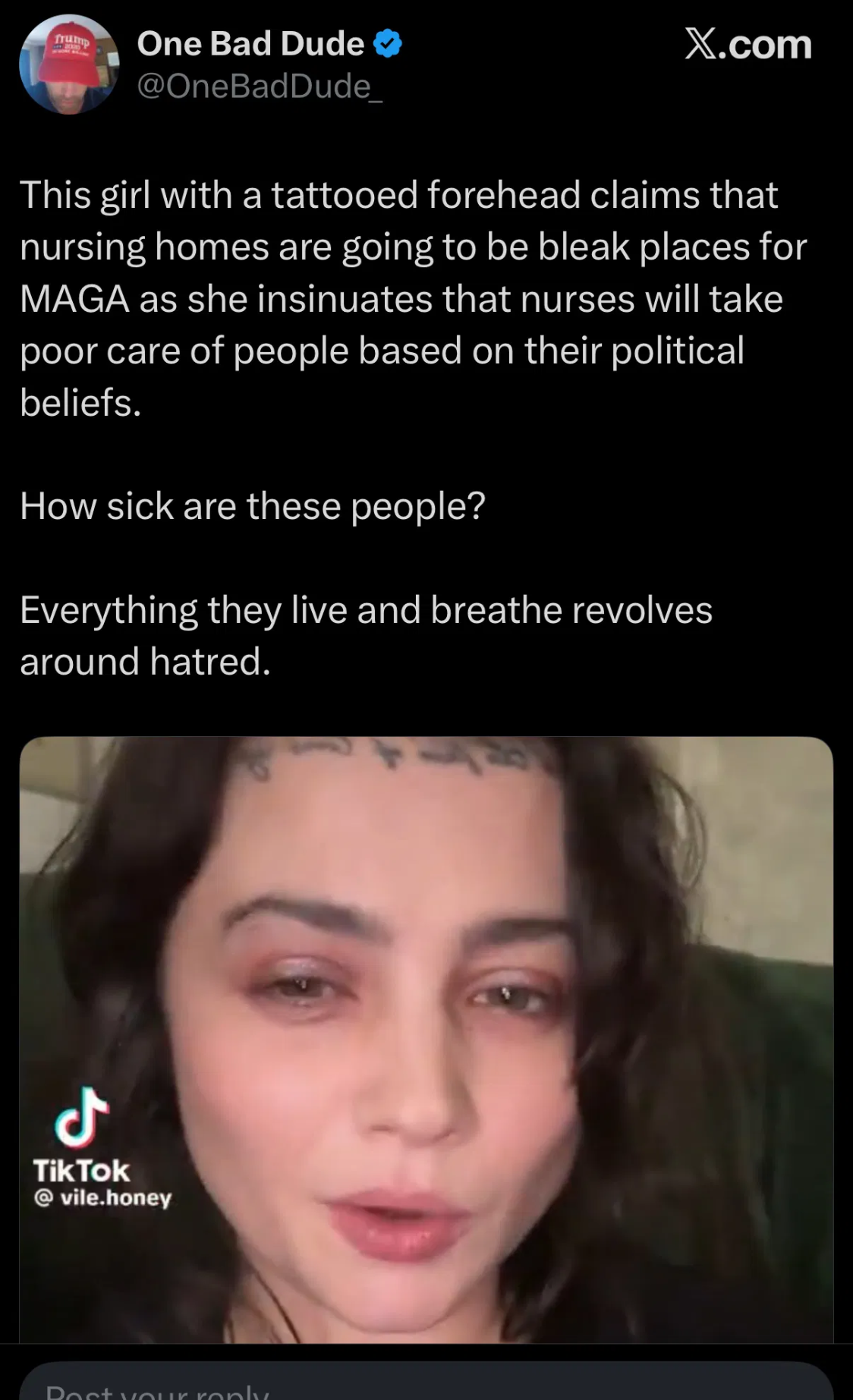 What is the sequence of letters on her head tattoo? What does it say?