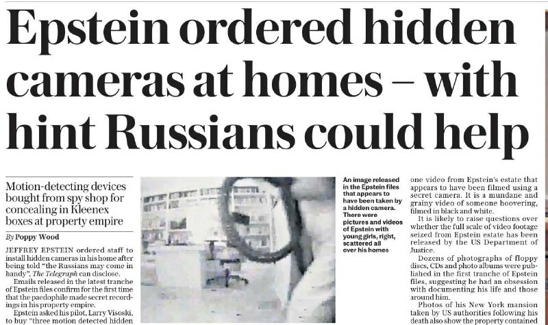 Daily Telegraph on jälleen törmännyt uusiin todisteisiin Venäjän osallisuudesta - #Epstein mainitsi venäläiset puhuessaan piilokameroista asunnossaan! Tämän jälkeen mainitaan jälleen, että hän tilasi venäläisiä tyttöjä, ja siksi hän oli lähes varm