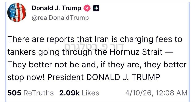 Iran allegedly charges people a toll to go through Hormuz and Trump allegedly complains