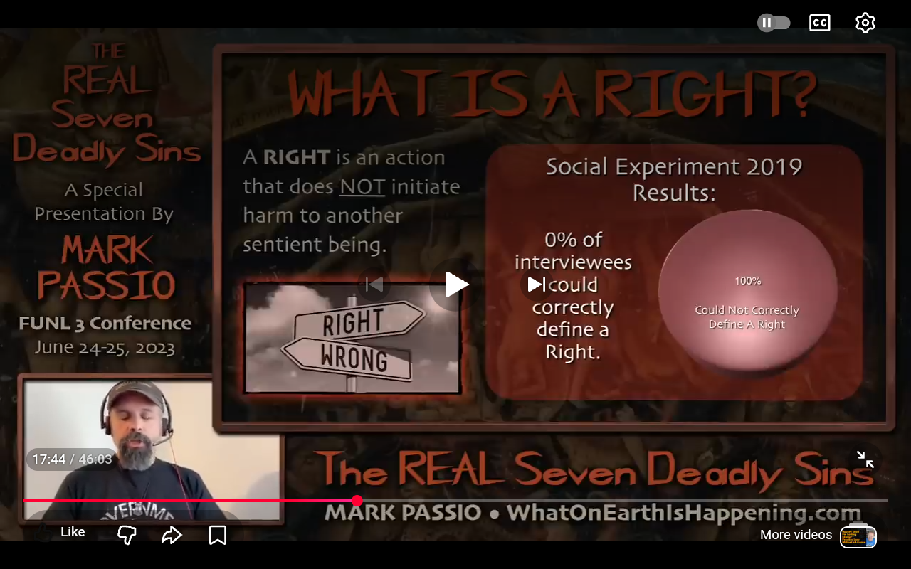 Mark Passio claimed that 0% of people he asked in street interview surveys got the definition of a right correct