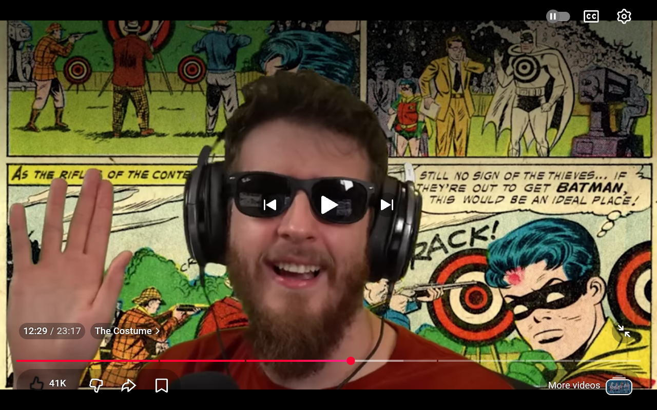 Batman wears bullseye target at sharpshooting contest in violation of good safety practices and gets shot